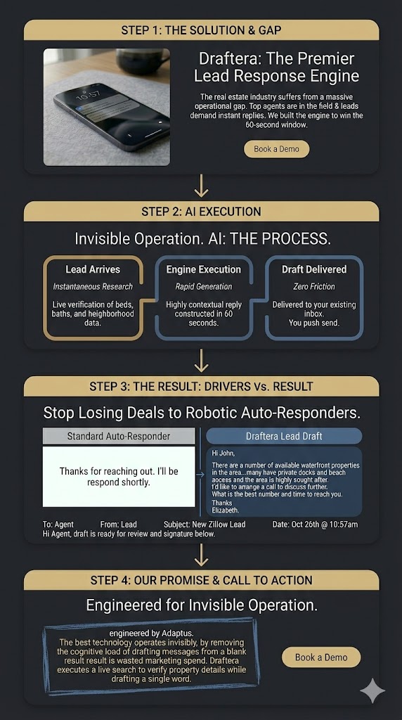 Draftera is the premier lead response engine built to win the 60-second window.